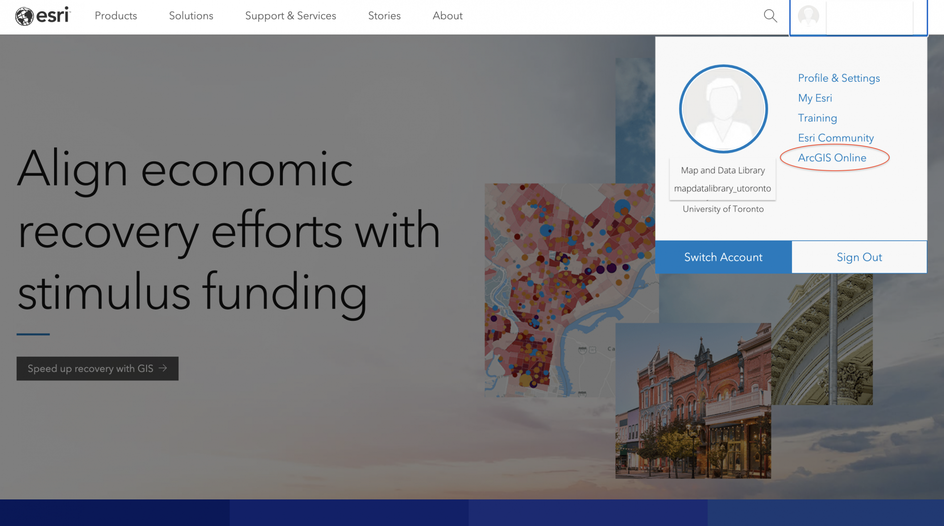 This tutorial is intended for U of T users who are using ArcGIS Online for the first time. If you established an ArcGIS Online account (On the UofT system) before the UTORid system was enabled, please continue to use that username and password; logging in with your UTORid is unnecessary.