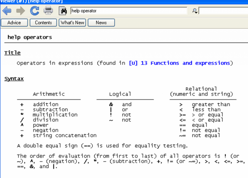 [9] See the Stata help files on expressions and operators: type “help exp” and “help operator” in the command screen.