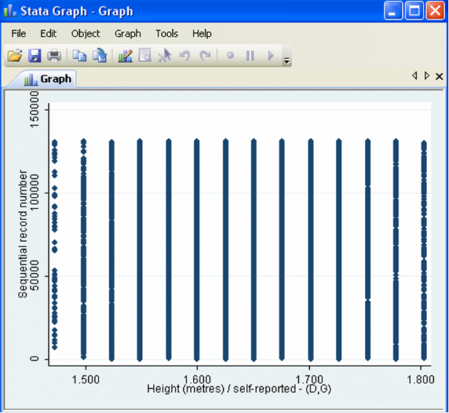 - Use the “if” qualifier to exclude it when generating statistics that use the height variable (“command if hwtghtm<=1.803”)