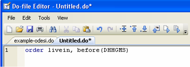Now that you have created these new variables, it would be nice to make sure that the rules by which you generated them was correct. Ideally, you would like to look at livein (the new variable based on marital status) and dhhgms (the marital status variable). However, it’s hard to compare two variables unless they are side by side. You can use the “order” command to move a variable (i.e. move a column of your dataset).
