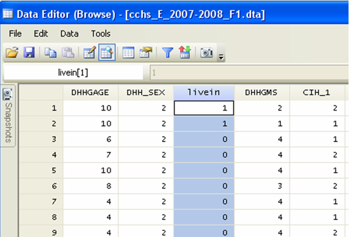 [8] The examples in this guide were created using a customized subset of the Canadian community health survey (CCHS), annual component, 2007-2008, available through the Data Liberation Initiative (DLI) and downloaded using [SDA@CHASS](mailto:SDA@CHASS).